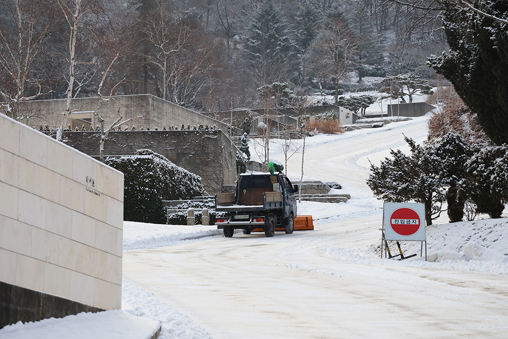 눈이 내리면 공원은 제설 작업으로 분주하오며 묘역에 따라 통행 제한을 실시합니다. 방문하실 때는 다음 사항을 각별히 주의해 주세요.