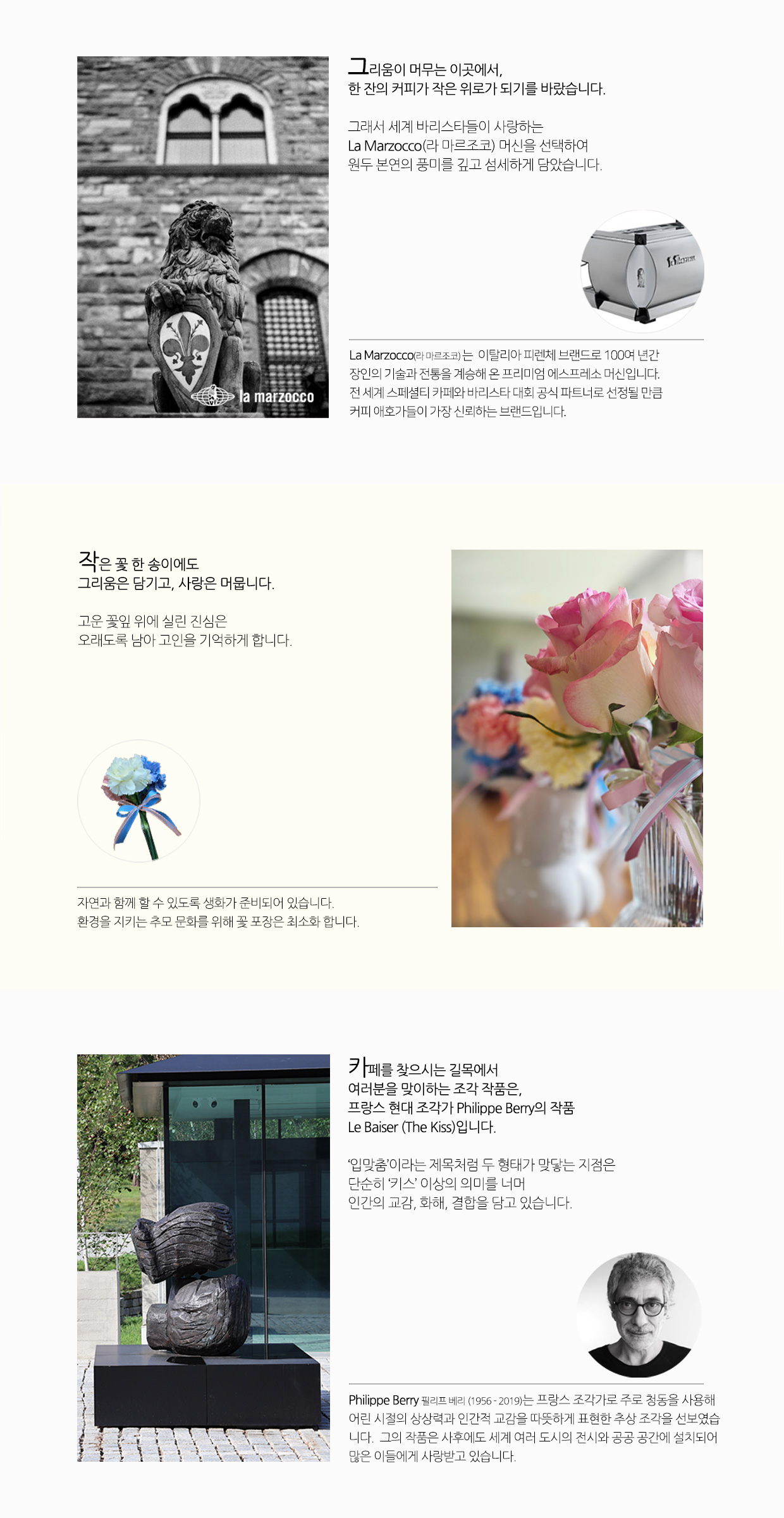 추모의 발걸음에 잠시 쉼을 드리고 고인을 기리는 마음을 아름답게 전할 수 있도록 공원 내에 테이크 아웃 음료와 헌화용 꽃을 이용하실 수 있는 편의시설이 마련되어 있습니다.