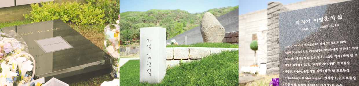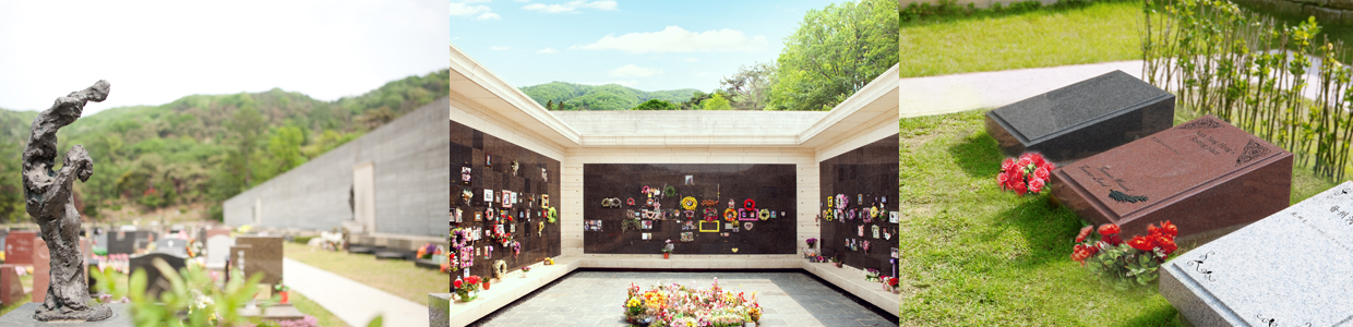 盆唐メモリアルパークは韓国の霊園のマイルストーンを提示するために新しいパラダイムの墓地を披露しました。これまでの墓地とは基本的な概念が異なります。様々な墓の種類が共存しています。墓石ごとにデザインが異なるだけでなく色も多様です。芸術的作品を接いだ彫刻の奉安墓をご提示しました。碑文はこうでなければならないという固定観念を乗り越え、永遠に大切にしたい言葉と文字を盛り込むスペースに生まれ変わらせました。率直で美しい文学がそこにあります。