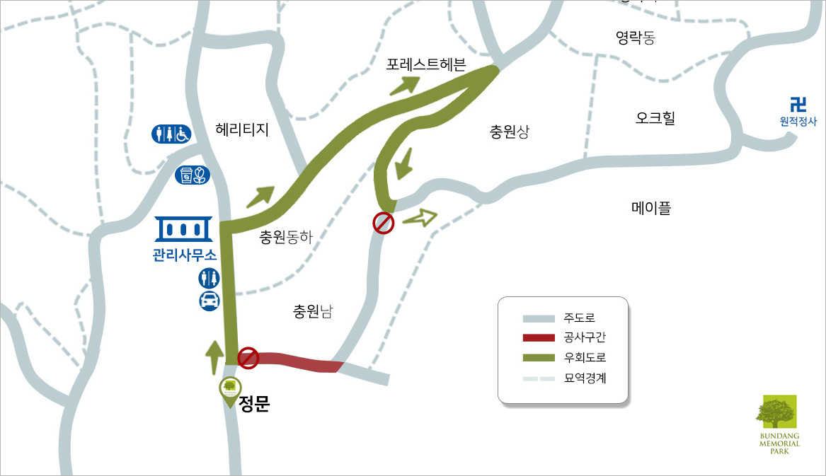 | [공지사항]공원 내 도로공사 및 우회도로 안내 (메이플/오크힐 묘역 방향) |